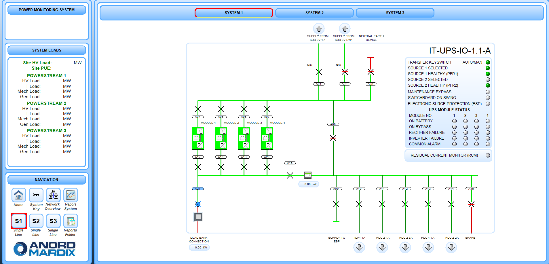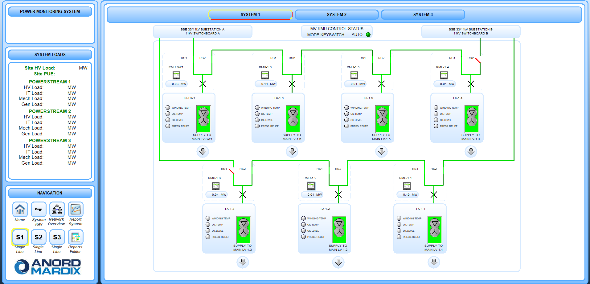 Anord Mardix SCADA solutions enable our clients to monitor a single PDU up to providing a whole site HV/LV electrical network and energy management system. This is delivered as a graphical and instruction-based Human to Machine Interface (HMI) touchscreen for a PLC-based control system.